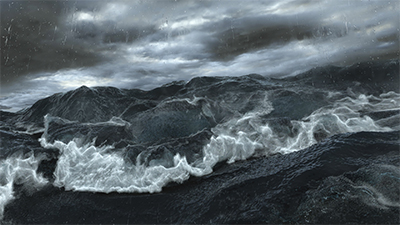 <reSOUND: 울림, 그 너머>는 중앙홀에서 펼쳐지는 장엄한 파도를 표현한 디스트릭트 특유의 압도적인 몰입형 미디어 인스톨레이션 <OCEAN>으로 강렬하게 시작됩니다.