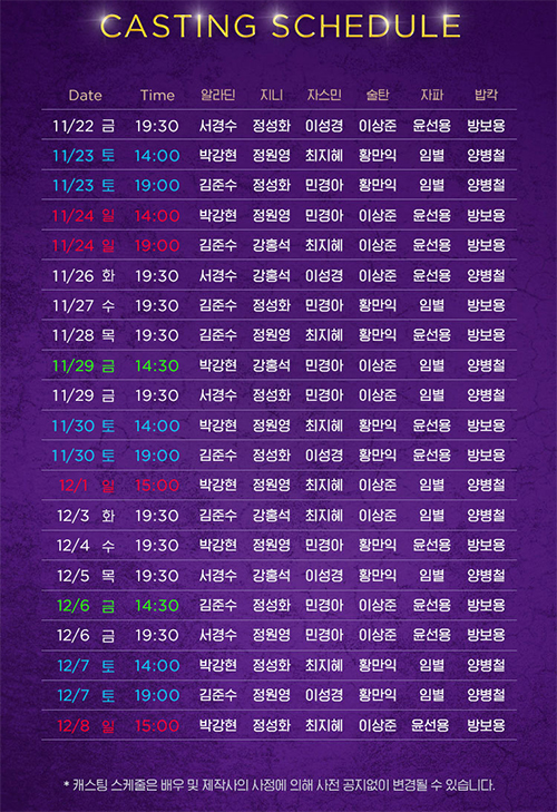 2024년 11월 22일부터 뮤지컬 <알라딘>이 시작됩니다.