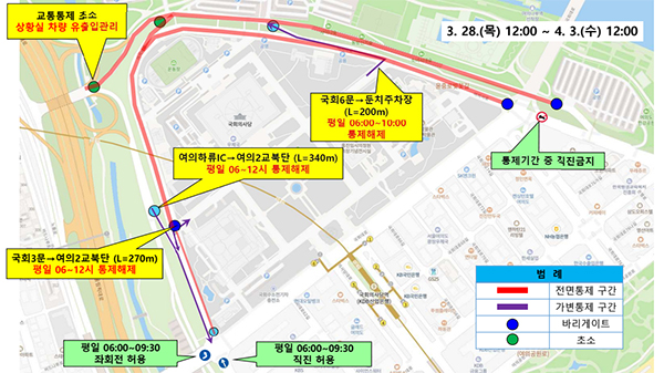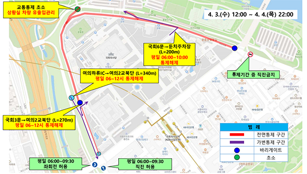 (국회 3문 ~ 여의2교북단 / 여의하류IC ~ 여의2교북단 / 국회 6문 ~ 둔치주차장)
