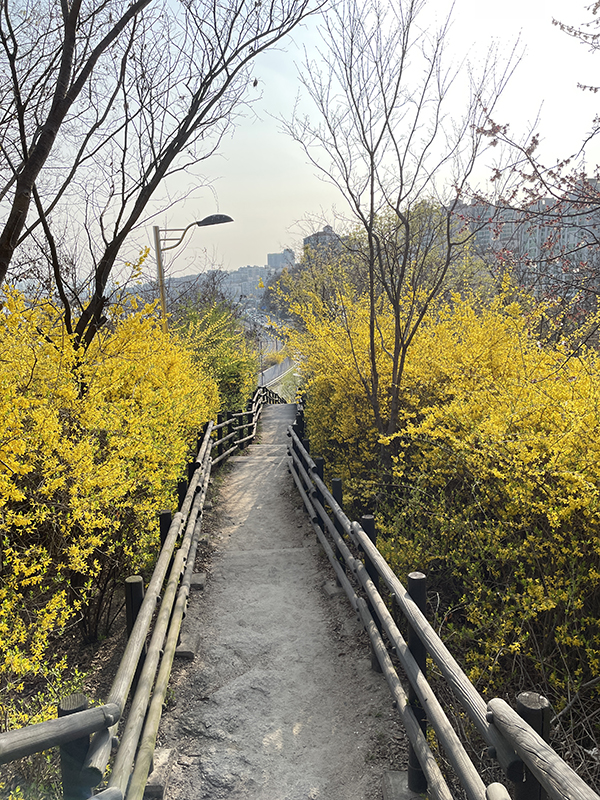 저는 2023년에 개나리축제가 끝난 후인 3월 29일에 응봉산에 방문했습니다.