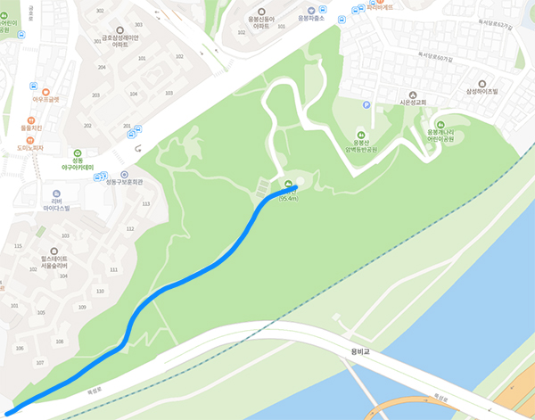 위 코스의 중간에 서울숲으로 가는 계단이 나옵니다.