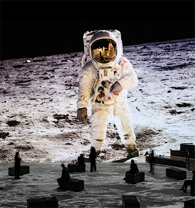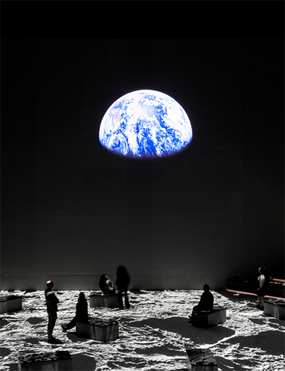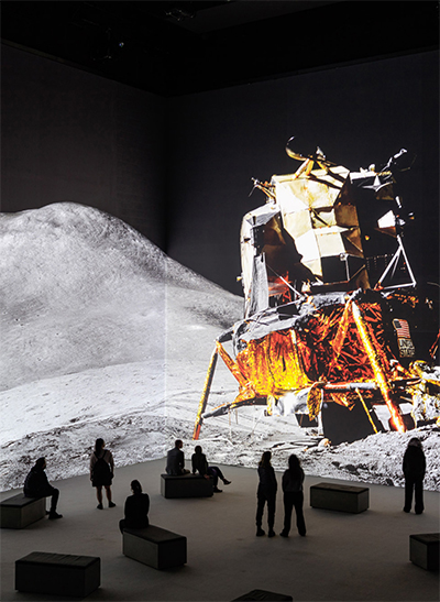 가로 18.5m, 세로 26m, 높이 12m의 공간에 최고 사양의 프로젝터 27개를 설치해 4개의 벽면과 바닥까지 총 5개의 면에 둘러싸여 콘텐츠를 감상할 수 있는 몰입형 전시장 라이트룸 서울에서 거대하고 웅장한 로켓 엔진의 발사 장면부터 인간이 달에 도착한 감동적 순간, 360도로 감상하는 달의 지형, 달에서 보는 지구가 떠오르는 아름다운 풍경까지, 실제 달 표면을 걷는 것 같은 영화적 경험과 감동을 누려볼 수 있습니다.