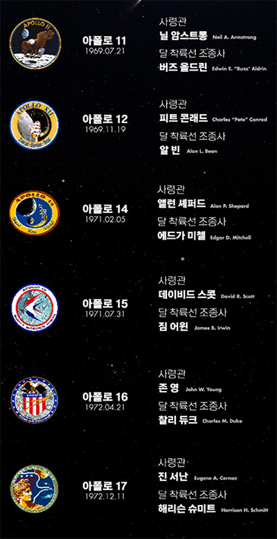 아폴로 11호부터 17호까지, 달 위를 걸었던 12명의 우주비행사들(THE MOONWALKERS 1969 ~ 1972)입니다.